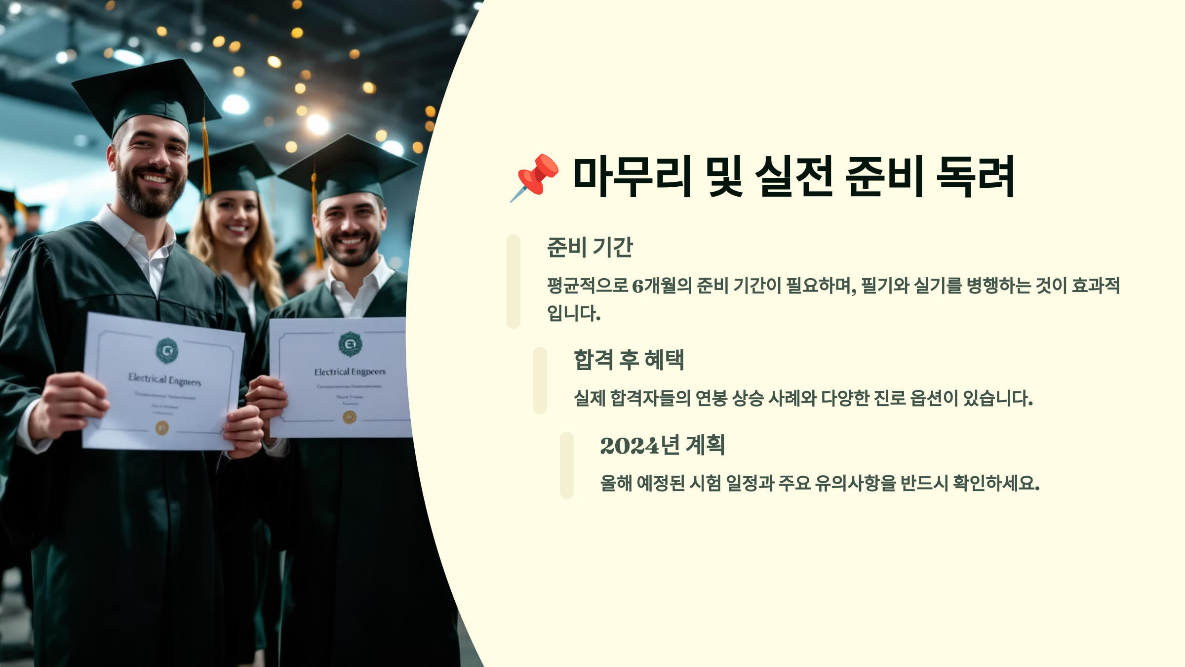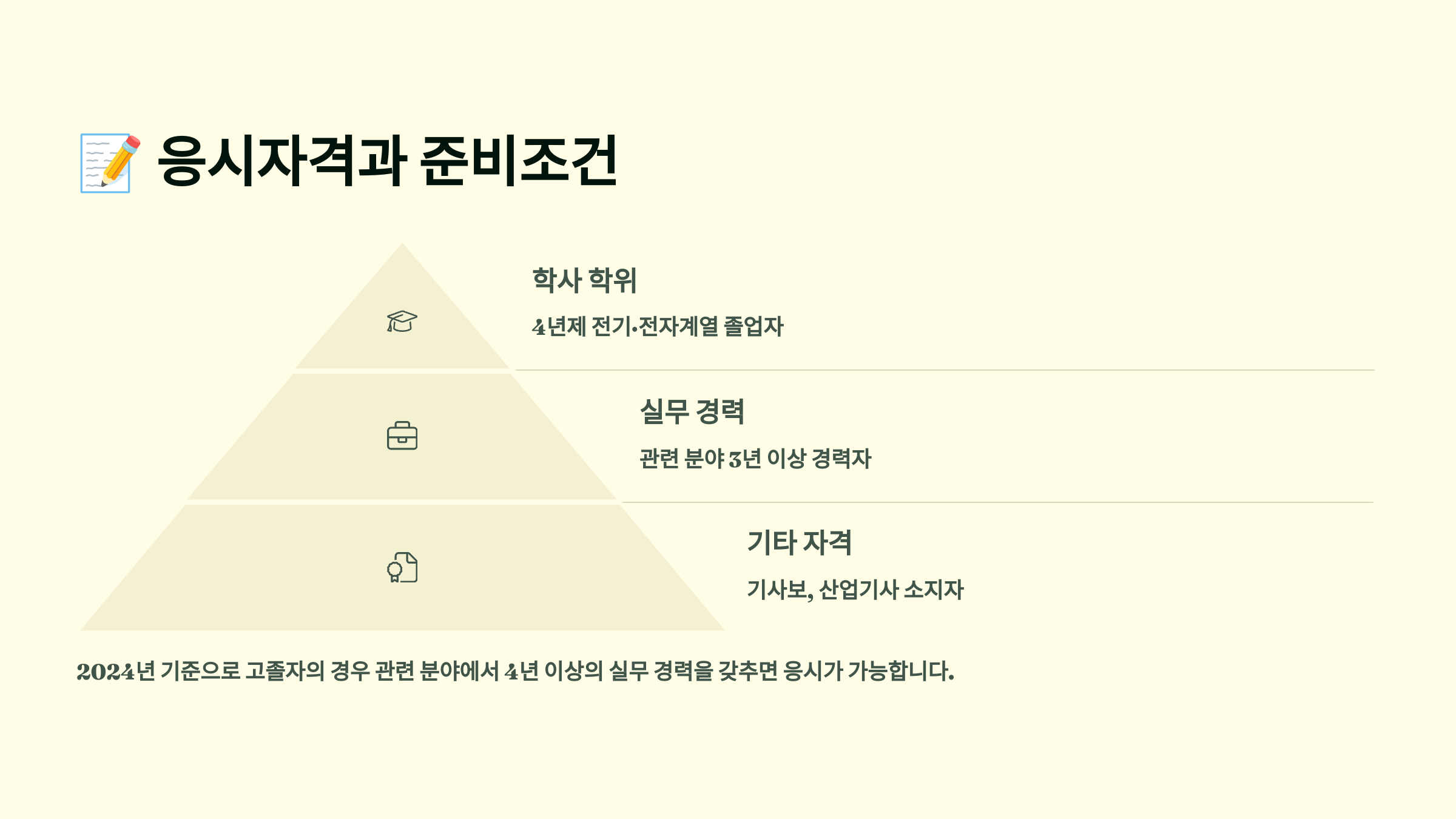 | 4년제 전기 전공 졸업자 | 즉시 응시 가능 | 대학 재학 중 4학년도 가능 |