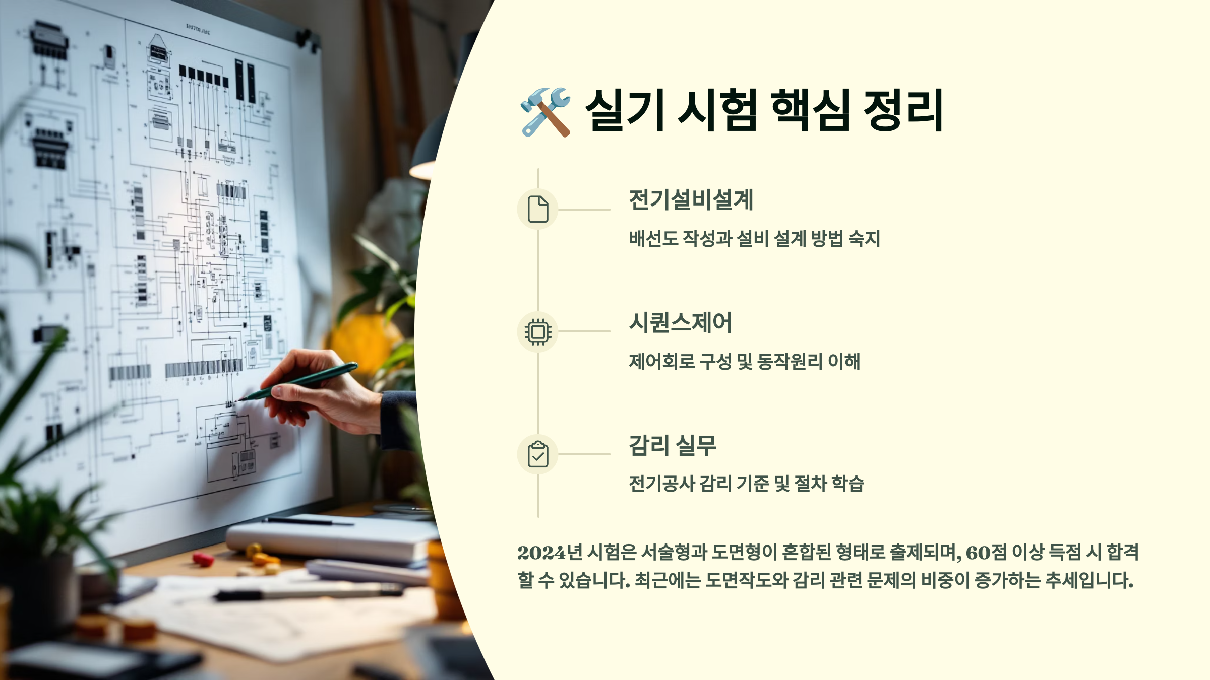 전기기사 실기시험은 “전기설비설계 및 관리”라는 과목명으로, 필답형(서술형) 시험이에요. 필기와 다르게 계산 문제, 이론 설명, 회로 해석 등 다양한 유형이 출제되며, 실전 적용 능력을 평가해요. 📐📝