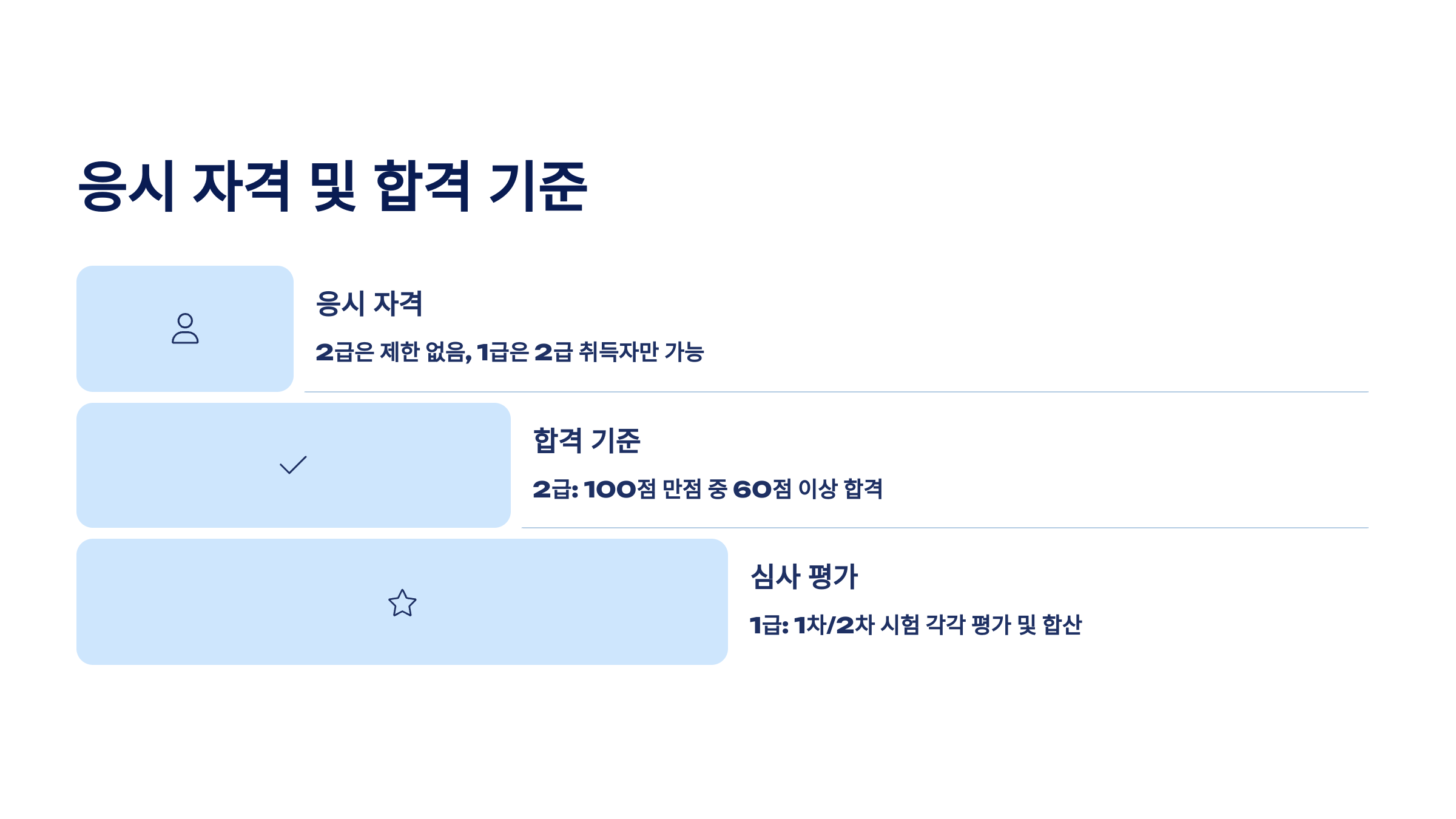 다음은 🧑‍💻 응시 자격 및 합격 기준 누구나 볼 수 있는 시험일까? 1급·2급 각각의 응시 조건과 합격 커트라인 알려줄게요! 🎓📊