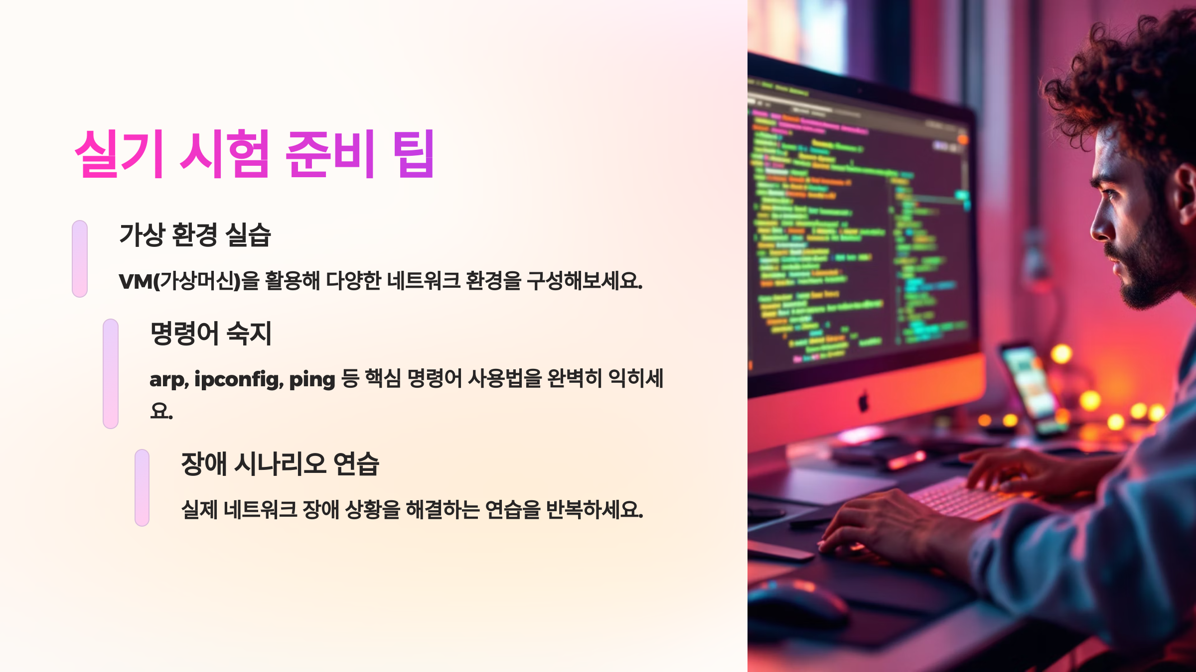 내가 생각했을 때 실기에서 중요한 건, 실제로 해보는 것이에요. 손으로 그려보고, 명령어를 쳐보고, IP 계산도 직접 해야 문제에서 당황하지 않아요! 🧮