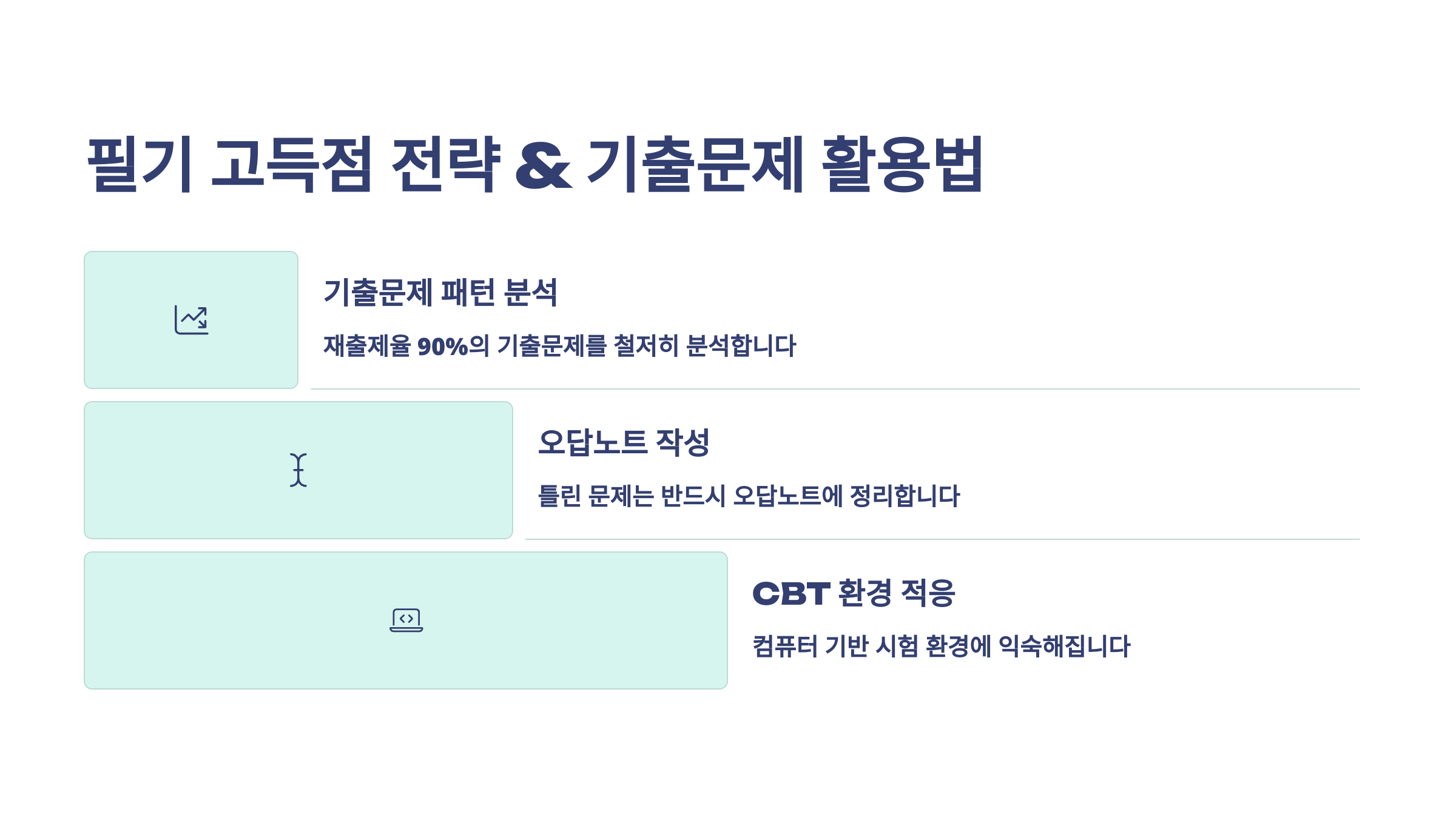 이제 다음은 📝 필기 고득점 전략 & 기출문제 활용법 기출 반복만으로 합격하는 방법을 자세히 알려드릴게요!
