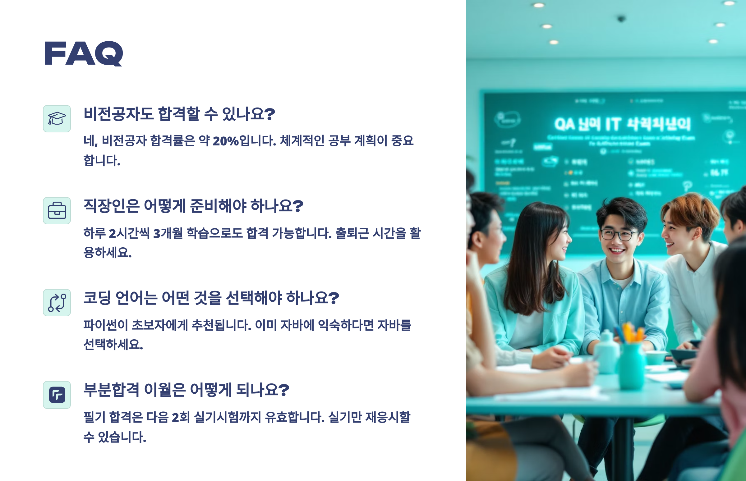 이제 다음은 ❓ FAQ 정보처리기사 필기 & 실기 준비하면서 가장 많이 나오는 실전 질문 8가지를 정리해드릴게요!