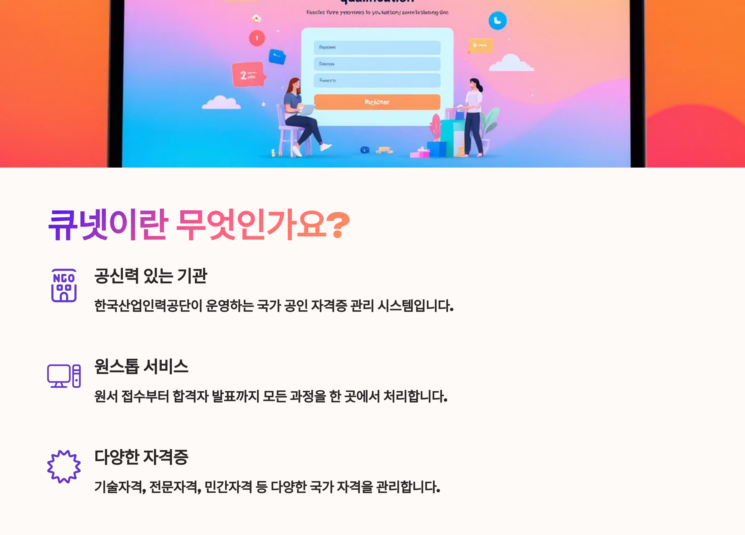 💬 자격증 하나로 여러분의 인생이 바뀔 수도 있어요. 준비는 지금부터, 큐넷과 함께 꼼꼼하게 시작해보세요.