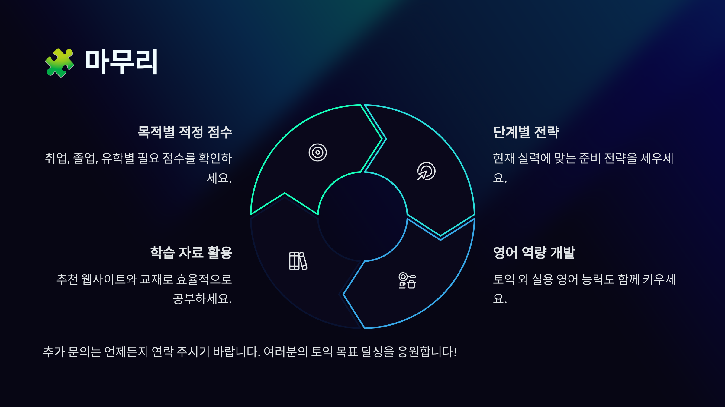 결국 고득점 전략의 핵심은 꾸준함 + 전략적 분석 + 반복 훈련이에요. 하루 1시간이라도 꾸준히 학습하고, 기출 분석을 반복하면 800점, 900점도 충분히 달성할 수 있어요. 화이팅! 💪📚