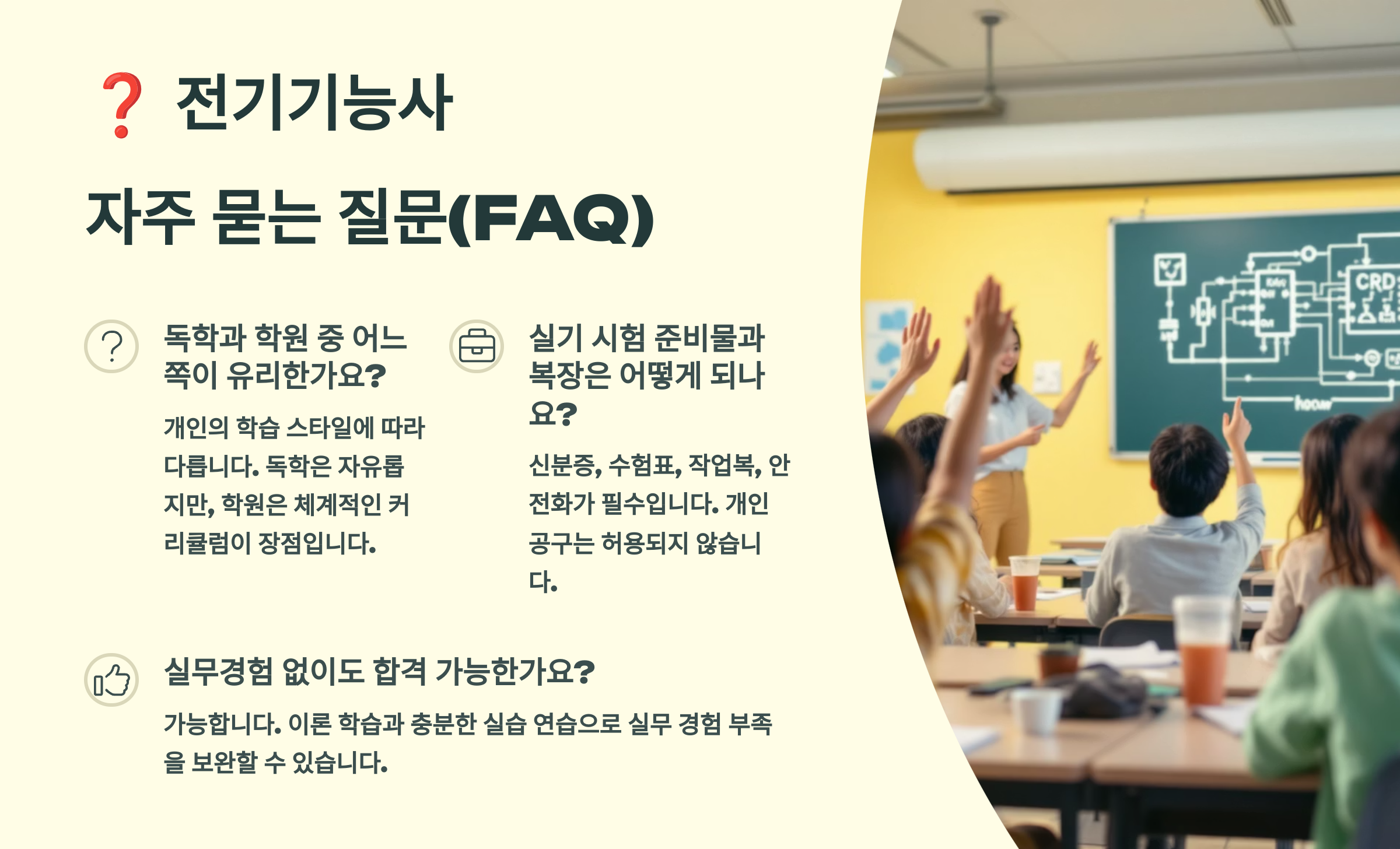 전기기능사 시험은 그 자체로 도전적인 시험이지만, 충분한 준비와 체계적인 학습을 통해 누구나 합격할 수 있어요. 필기와 실기 모두 각기 다른 준비 방법이 필요하지만, 두 시험 모두 기초부터 철저히 준비하면 좋은 결과를 얻을 수 있어요. 🧑🏫