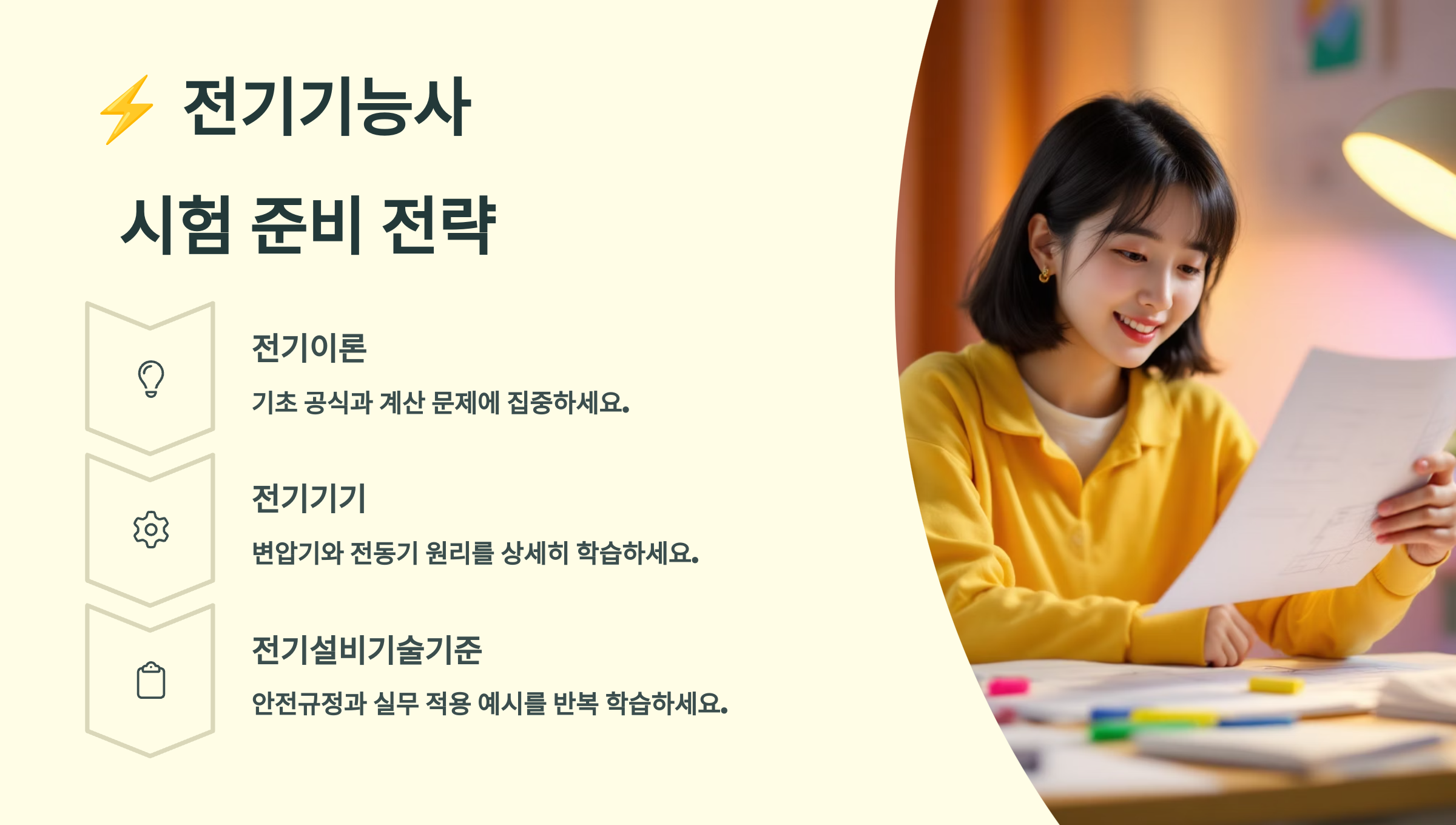 필기시험에서는 이론적인 지식이 중요하기 때문에, 각 과목을 고르게 학습하는 것이 중요해요. 예를 들어, 전기이론 과목은 전기회로, 전압, 전류, 저항 등 기본적인 개념을 이해하는 데 도움이 돼요. 전기기기 과목에서는 전동기, 변압기 등의 원리와 특성에 대해 다루게 돼요. 🧠