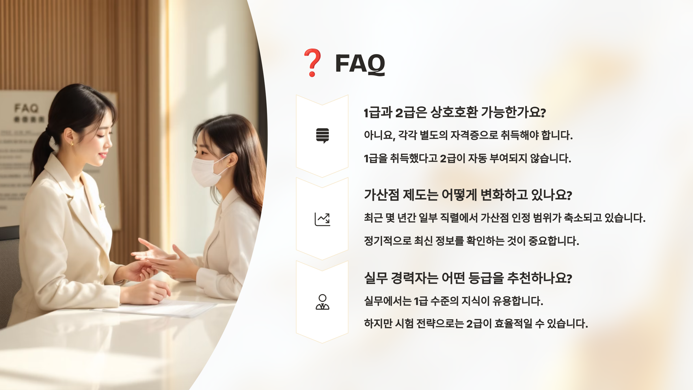 TIP: ‘지금’ 필요한 게 가산점 확보인지, 실무 능력 강화인지를 기준으로 1급과 2급 중 전략적으로 선택하는 게 가장 합리적이에요! 🎯