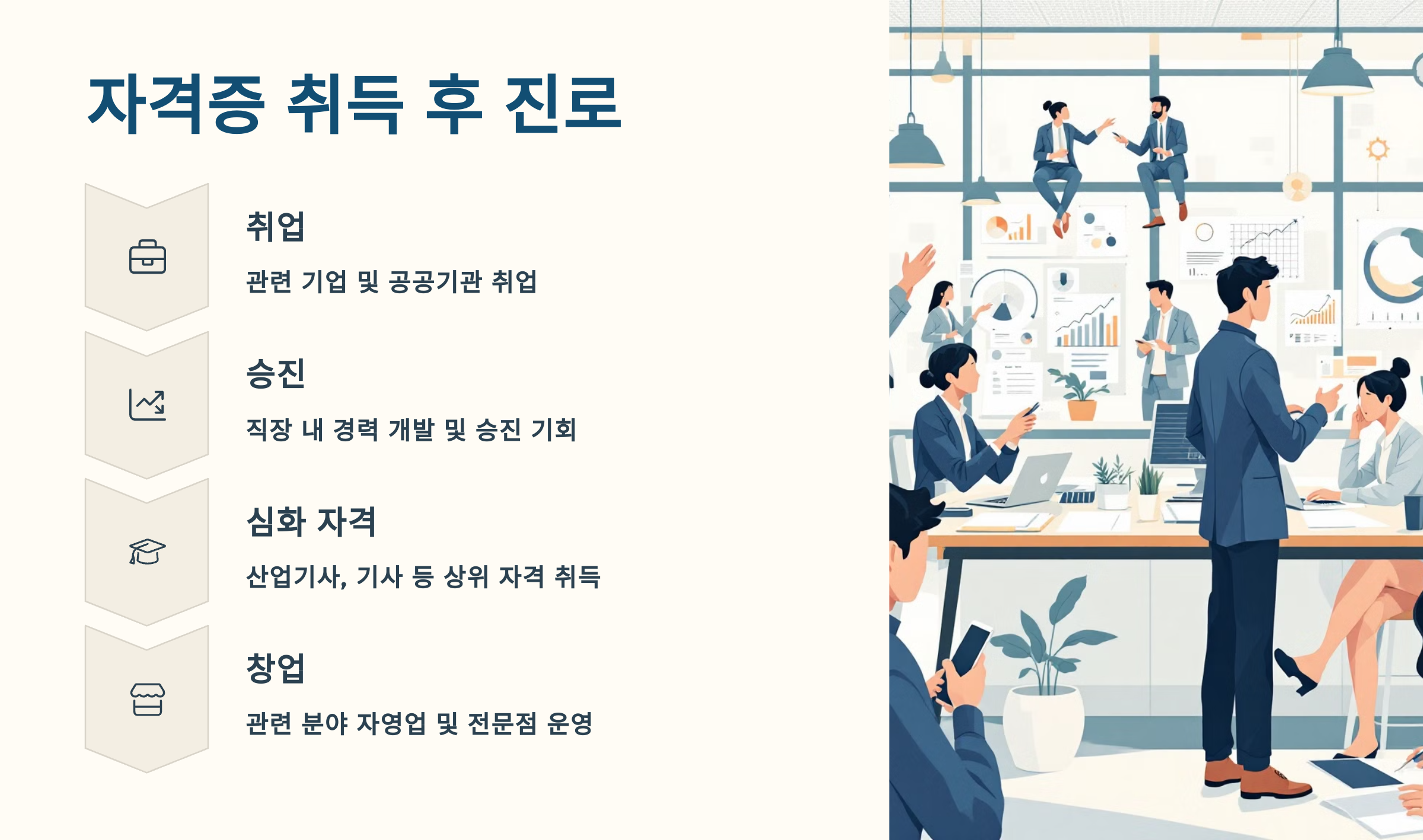 🏆 자격증 취득 시 장점도 다양해요! 공기업, 중소기업, 건설현장, 미용실, 식당, 창업 등 실질적인 진로 확장에 도움이 되고, 일부 대학에선 가산점 또는 학점 인정 혜택도 받을 수 있어요.