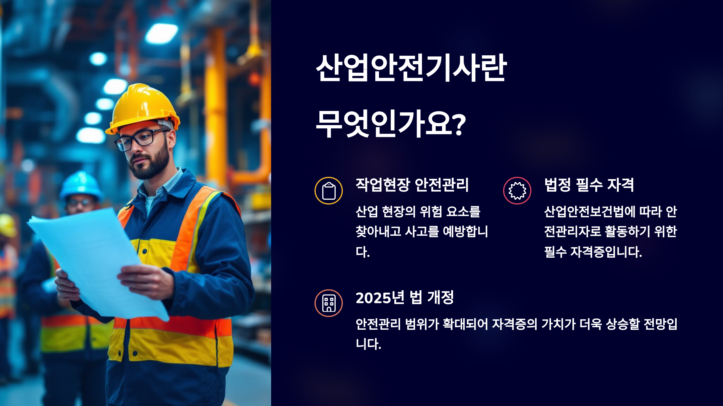 산업안전기사는 제조·건설·플랜트 등 다양한 산업 현장에서 작업자의 생명과 안전을 책임지는 핵심 자격증이에요. 2025년부터 안전관리자 선임 기준이 강화되면서 산업안전기사 취득은 더 중요해졌죠! ⚠️